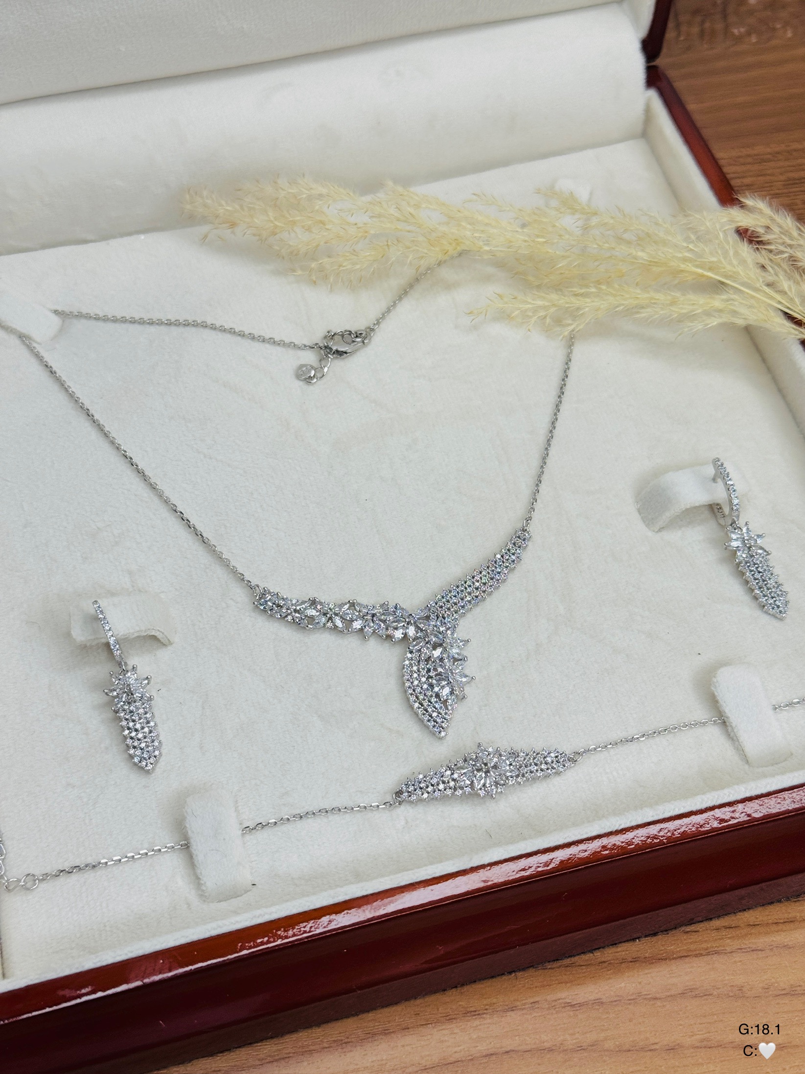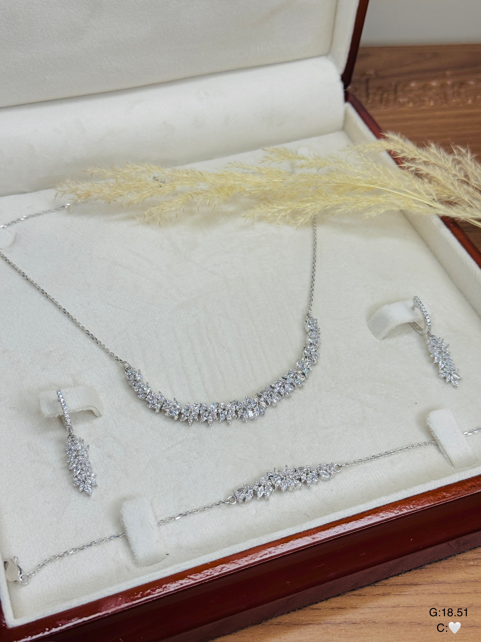 سرویس نقره زنانه مجموعه ای از زیورآلات یا لوازم تزئینی ساخته شده از نقره است که به صورت ست های هماهنگ طراحی میشوند. این سرویس ها معمولاً شامل گردنبند، گوشواره، دستبند، انگشتر و گاهی لوازم جانبی مانند شال یا سنجاق سینه هستند. نقره به دلیل انعطاف پذیری و قابلیت حکاکی، امکان خلق طرح های ظریف و زنانه را فراهم میکند. تمامی زیور آلاتی که در بالا ذکر شد را میتوانید به یورت جداگانه نیز تهیه نموده و به اصطلاح برای خود یک سرویس نقره جمع کنید اما در این حالت دیگر زیور آلاتی که خریداری نموده اید با یکدیگر ست نبوده و به هم نمیآیند. این مورد ممکن است شما را در استفاده از آن سرویس کمی دلسرد سازد.