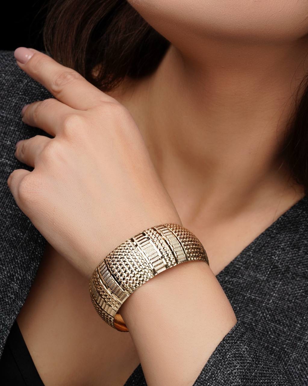 این النگوی طلاروس زنانه با طراحی برجسته و چشمگیر، برای خانمهایی ساخته شده که از یک اکسسوری فقط زیبایی نمیخواهند؛ بلکه دوام، کیفیت و حس خاص بودن برایشان اهمیت دارد. سطح بافتدار و خطوط منظم روی النگو، جلوهای متفاوت و کاملاً خاص ایجاد میکند که روی مچ دست همچون یک قطعه زیور ارزشمند میدرخشد.