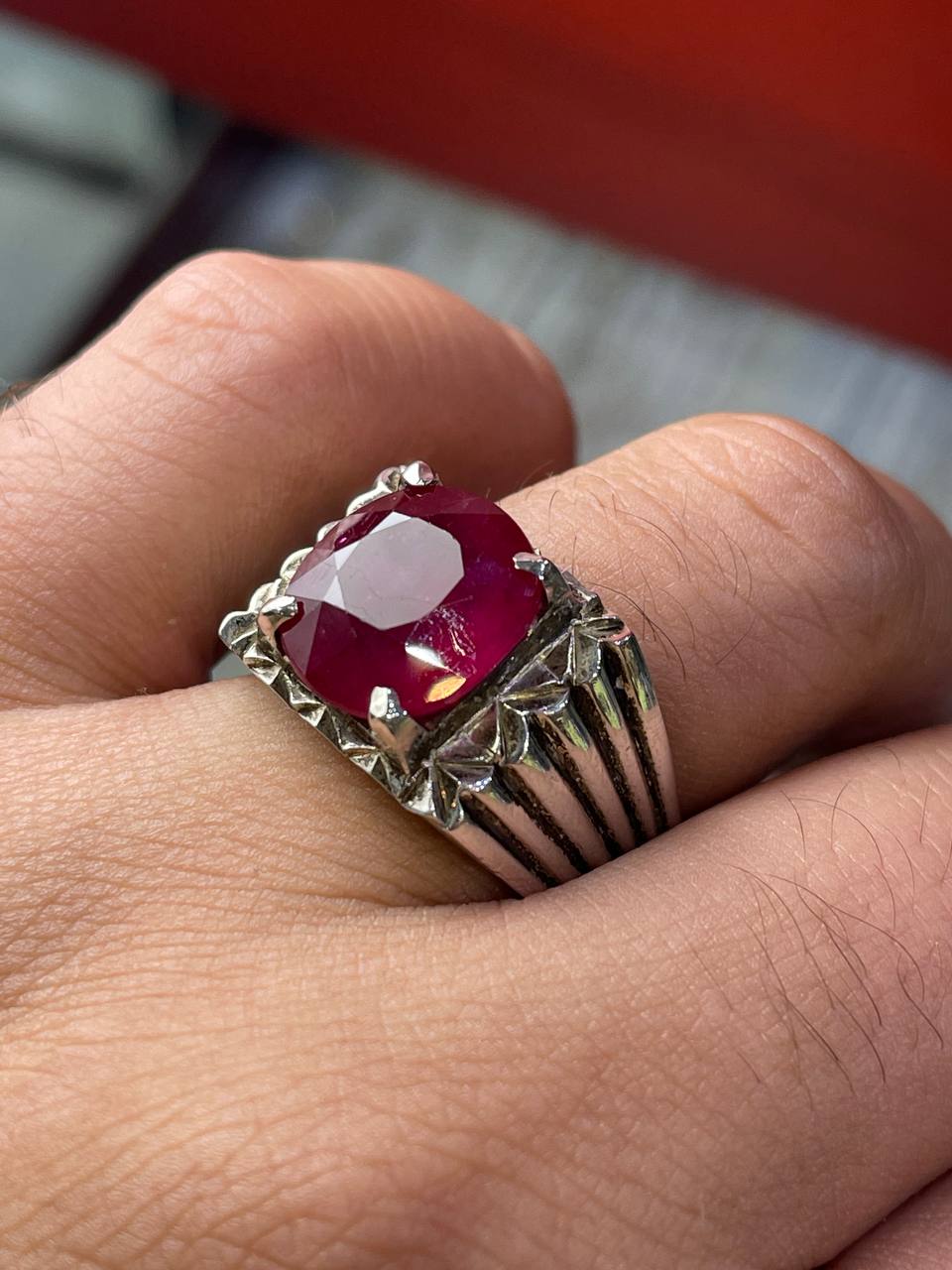 این انگشتر فاخر ساخته شده از بهترین متریال نقره با عیاد ۹۲۵ و با بکارگیری به روزترین و زیبا ترین طرح توسط استاد شرفیان ساخته شده و رکاب این انگشتر مخراجی شده با الماس تراش برلیان اصل میباشد و سنگ این انگشتر یاقوت سرخ آفریقایی اصل هست که یاقوت خواص مادی و معنوی بسیاری دارد و نماد سنگ قدرت است و یاقوت سرخ به شما در کسب و افزایش تمرکز کمک میکند و از خواص آن میتوان اشاره کرد به: