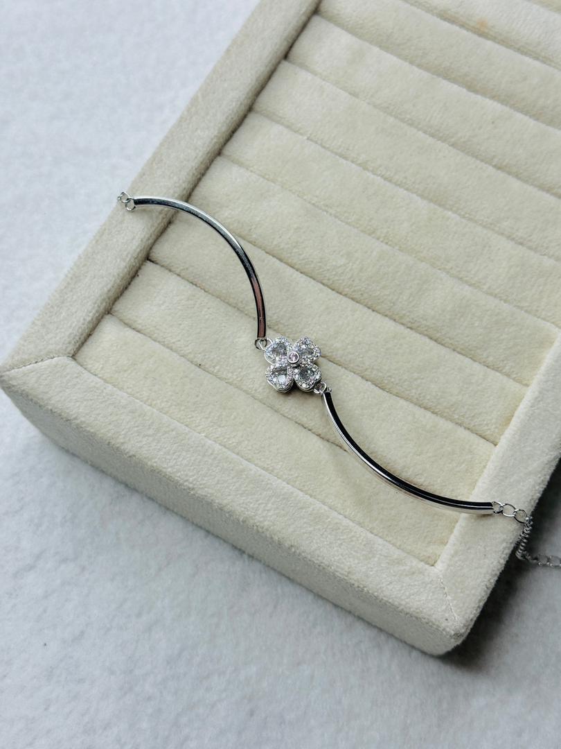 این دستبند فقط یک زیور نیست، یک حس است؛ حسی از زیبایی، دقت و انتخابی خاص برای بانویی خاص. با درخشش نگینهای ظریف و آبکاری طلای سفید، هر بار که نگاهتان به دستانتان میافتد، لبخند رضایت خواهید زد.