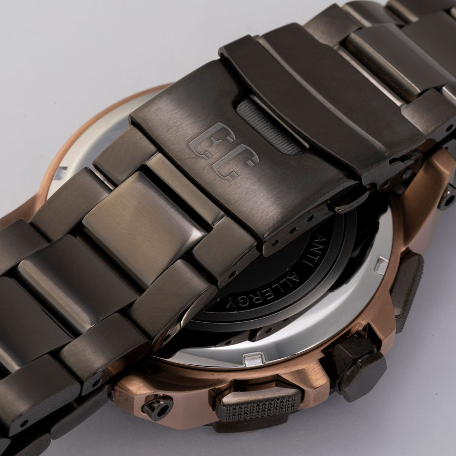 این مدل دارای صفحه فول استیل با نگین های میکرو اتمی درون صفحه به قطر 50 میلی متر است که به خوبی بر روی مچ دست می نشیند علاوه بر آن بدنه و بند از جنس استیل ضد فرسایش ساخته شده بسیار لوکس به این ساعت بخشیده است همچنین صفحه نمایش به رنگ مشکی آن باعث خوانایی هرچه بیشتر این ساعت شده است.